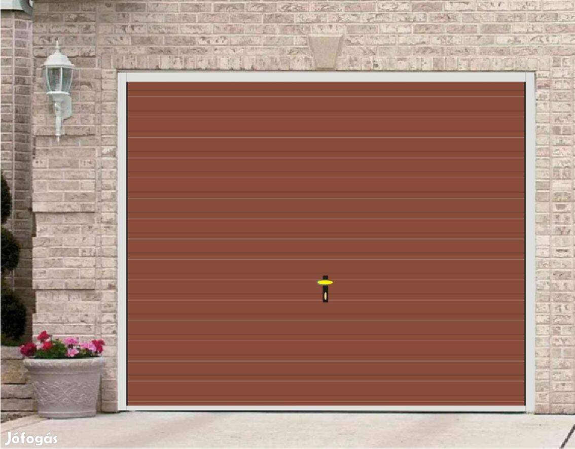 Garázskapu PR billenő, fényes világos barna T7, 11 cm vízszintes bordázattal, 0Ft szállítás, 0 Ft szerel és bárhová eladó, áfás számlával, új, garanciával.