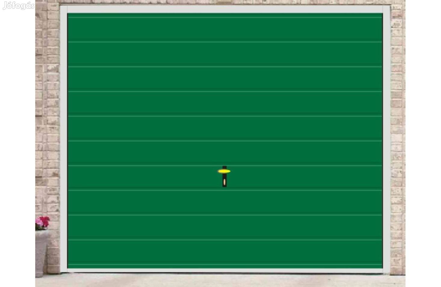 Garázskapu PR billenő, fényes zöld , 20 cm vízszintes bordázattal, 0Ft szállítás, 0 Ft szerelés bárhová eladó, áfás számlával, új, garanciával.