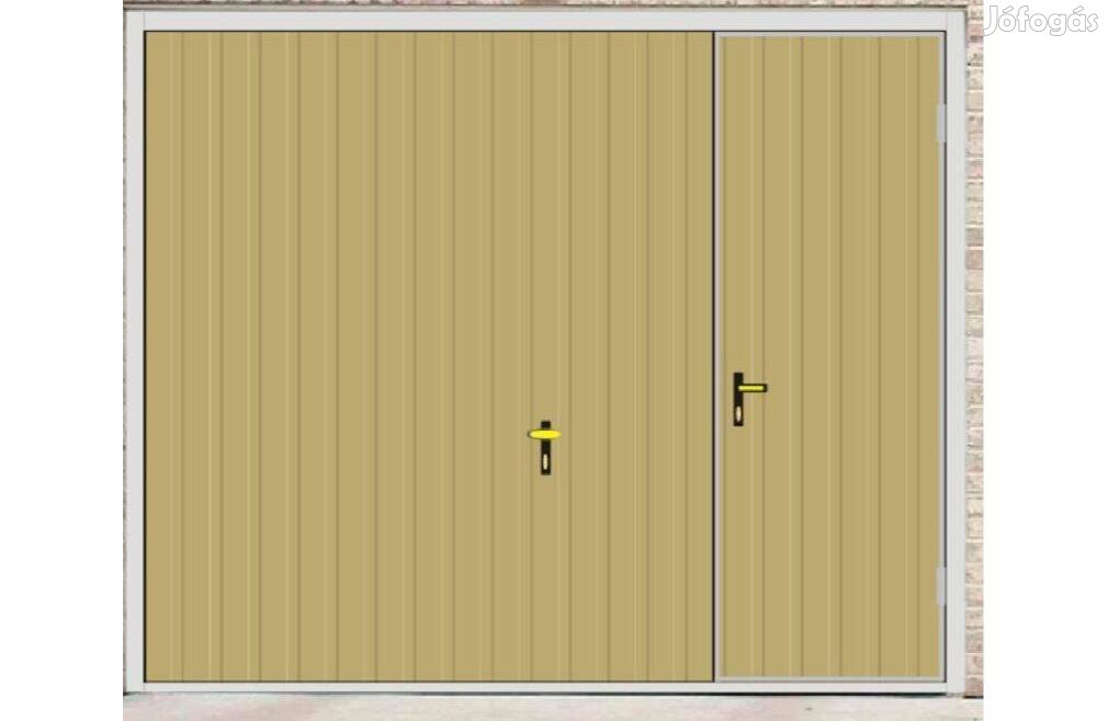 Garázskapu PR billenő, homok fényes szín, sok opciót tartalmaz., személybejáró a kapuban jobb oldalon, T7 11cm függőleges bordázat, kapumotor, szigetelés, ajtókitámasztó, 0Ft szállítás, 0 Ft szerelés bárhová eladó, áfás számlával, új, garanciával.