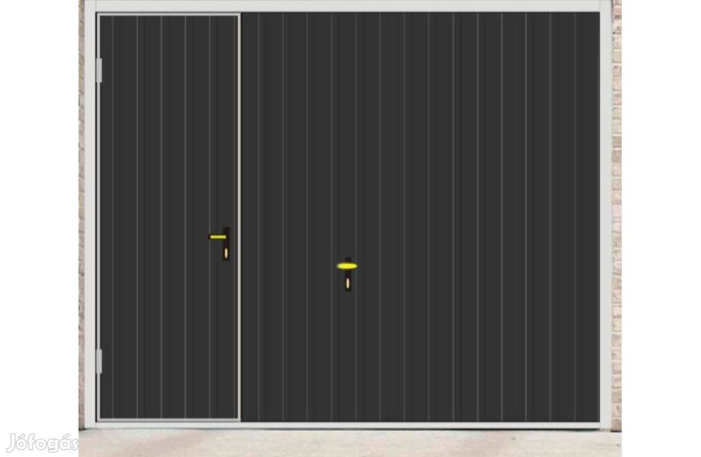 Garázskapu PR billenő, sok opciót tartalmaz., fekete, fényes felület, szenélybejáró a kapuban bal oldalon, T7 cm függőleges bordázat, kapumotor, szigetelés, kapukitámasztó, 0Ft szállítás, 0 Ft szerelés bárhová eladó, áfás számlával, új, garanciával.