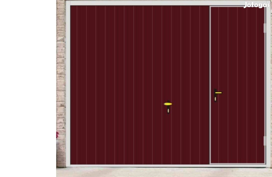 Garázskapu PR billenő, sok opciót tartalmaz., sötét meggy , fényes felület, szenélybejáró a kapuban jobb oldalon, T7 cm függőleges bordázat, kapumotor, szigetelés, kapukitámasztó, 0Ft szállítás, 0 Ft szerelés bárhová eladó, áfás számlával, új, garanciával.