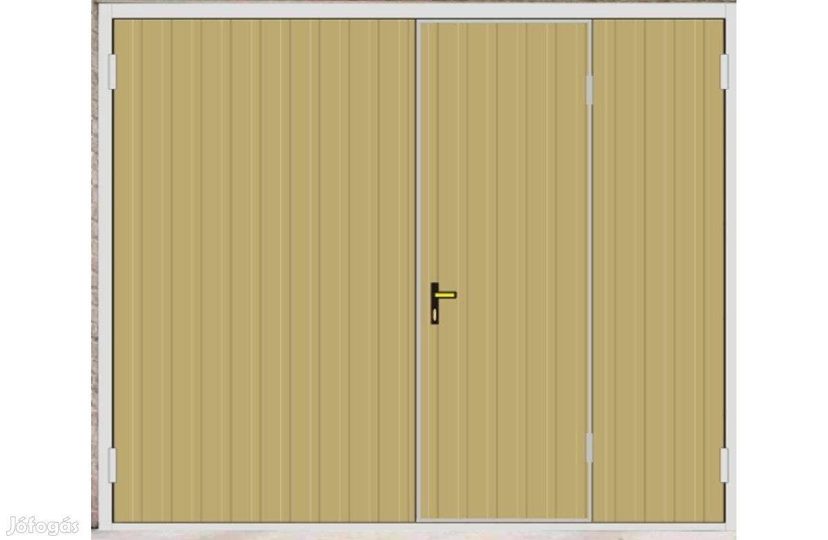 Garázskapu PR kétszárnyú, sok opcióval, homok szín, fényes, személybej
