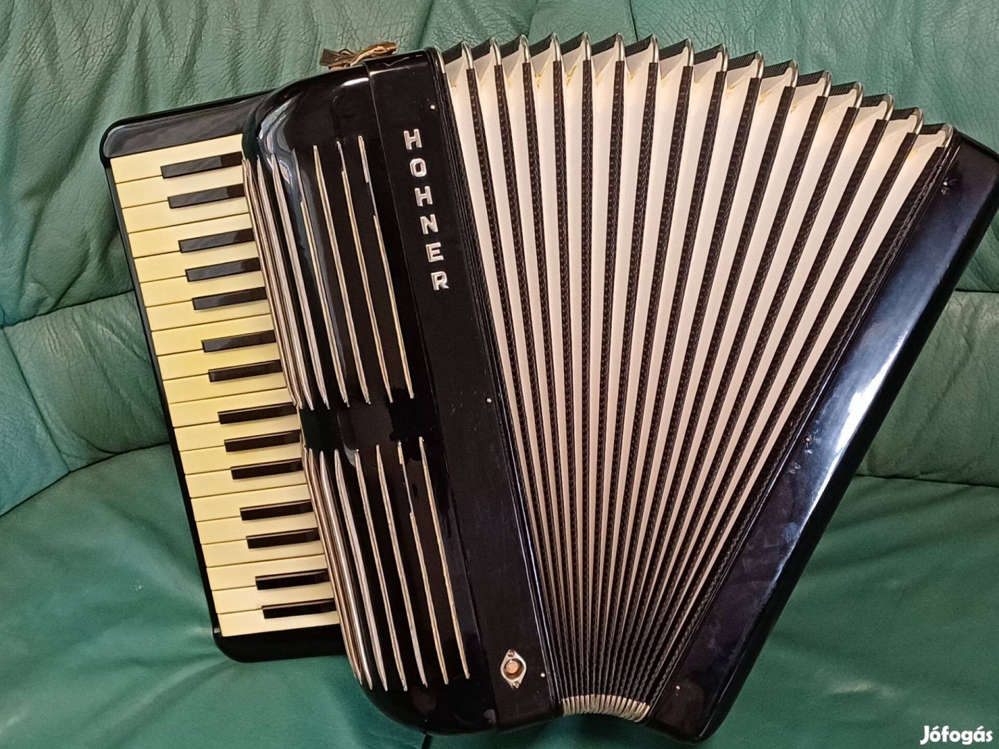 Hohner Basso basszus harmonika tokkal, szíjakkal eladó. Kiváló kísérő hangszer, erőteljes hangzással. 34 billentyűs 2 kórusos.