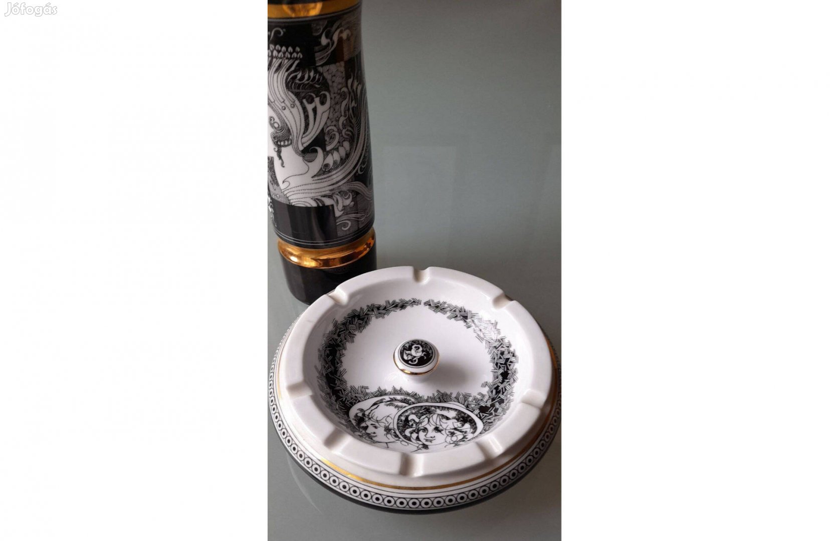 Szász Endre által tervezett Hollóházi porcelán hibátlan hamutartó, 16cm, eladó. (A váza elkelt)