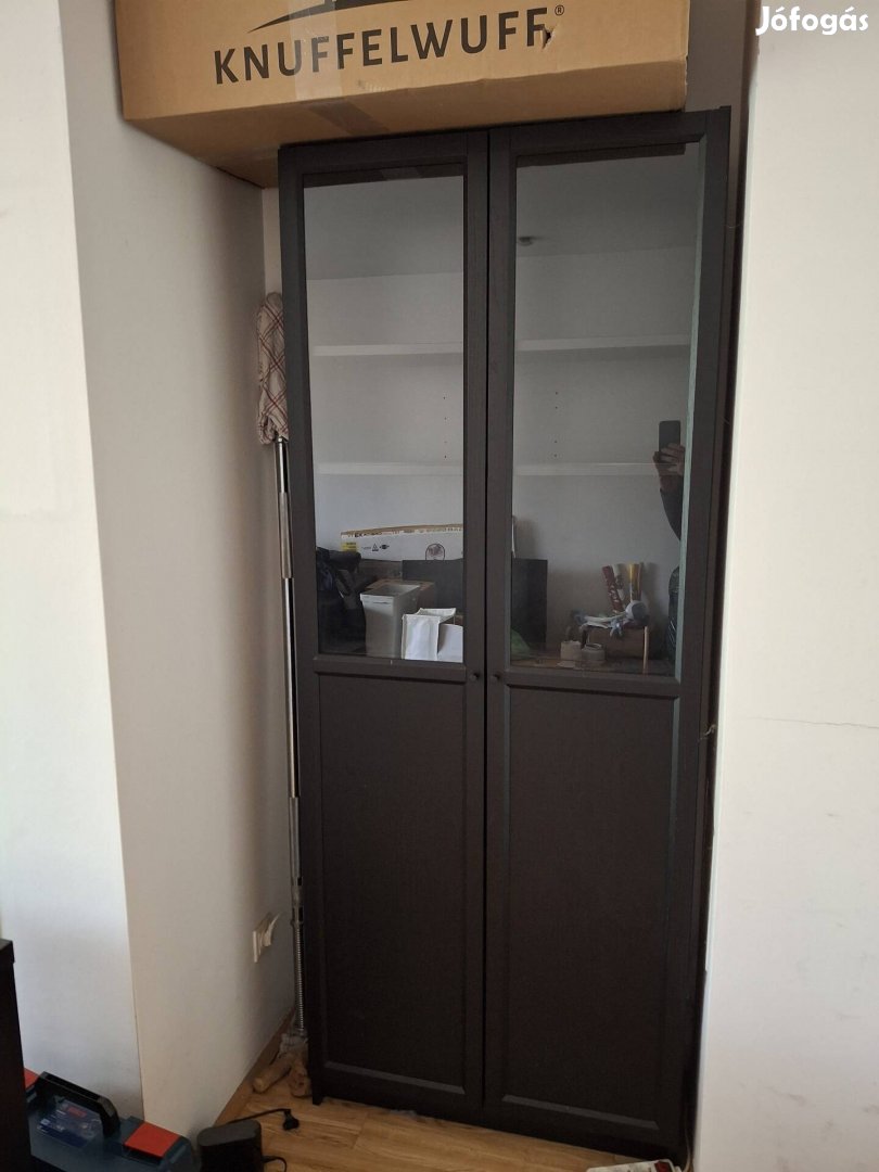 Eladó egy a képen látható állapotban lévő sötétbarna ikea szekrény, 202 magas, 80 széles 30 mély.