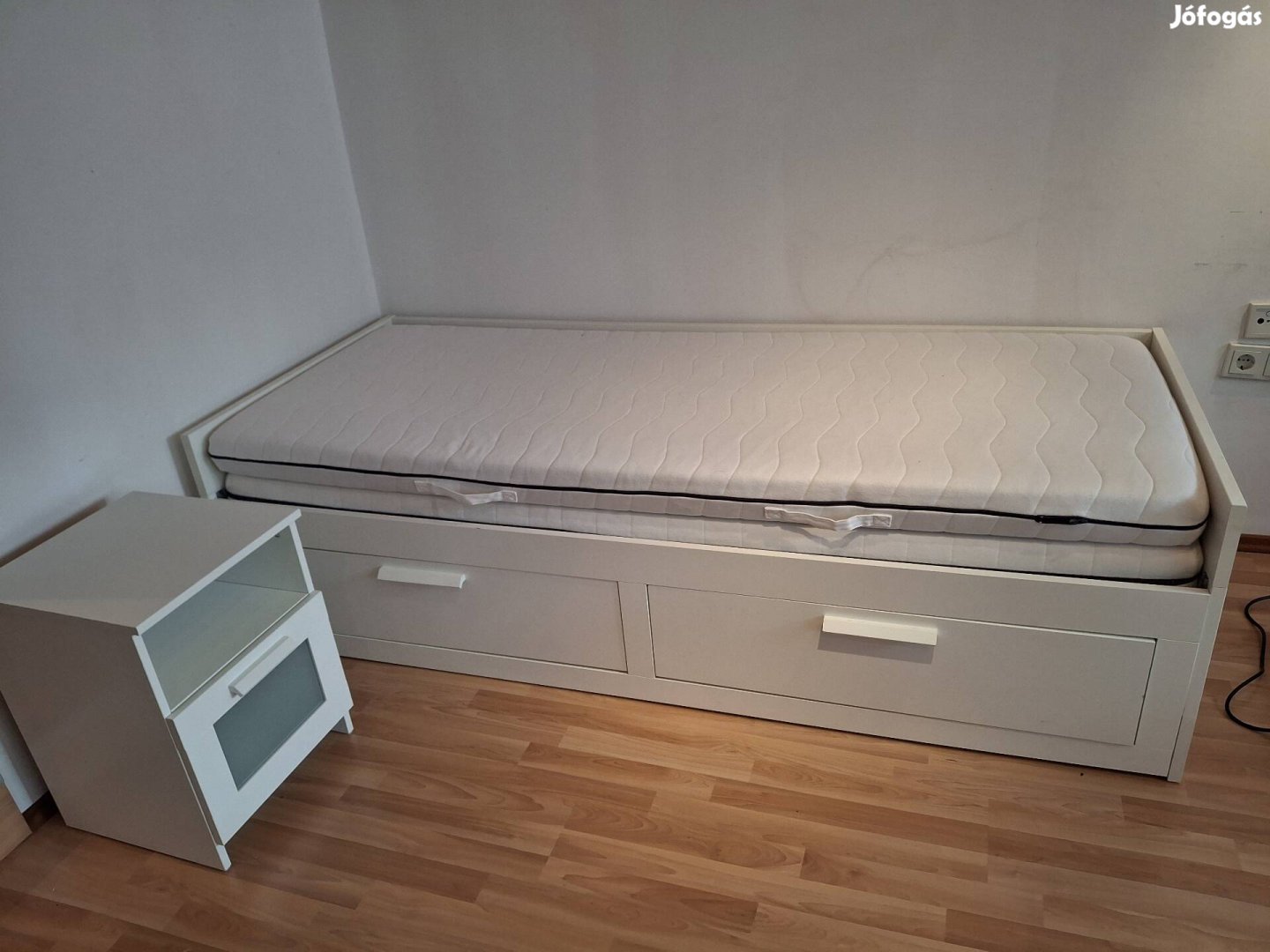 Eladó egy szép állapotban lévő, kihúzható Brimnes ágy matraccal és egy éjjeli szekrény.