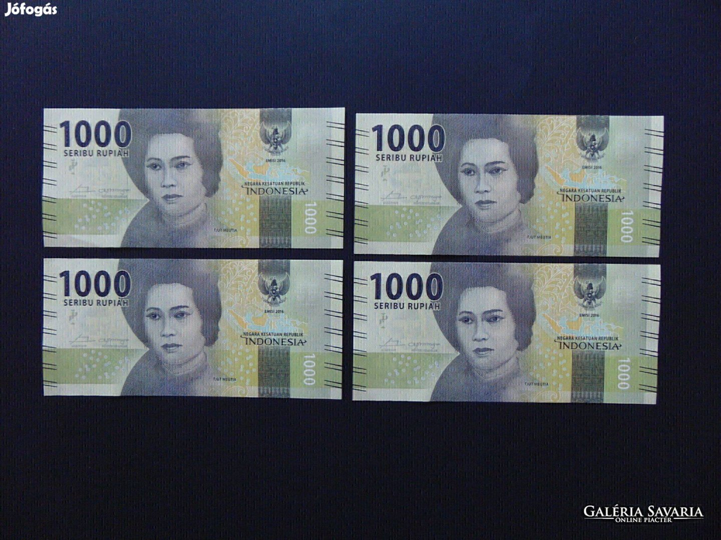 Indonézia 4 darab 1000 rupia sorszámkövető - szép bankjegyek