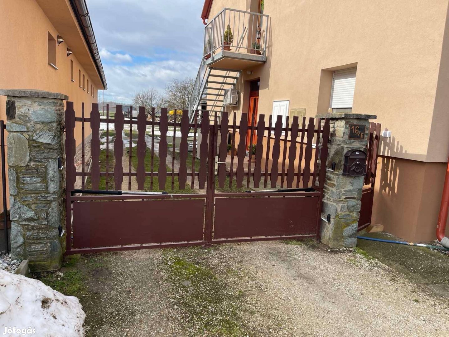 Kétszárnyú kapu + kiskapu kapunyitó motorral
