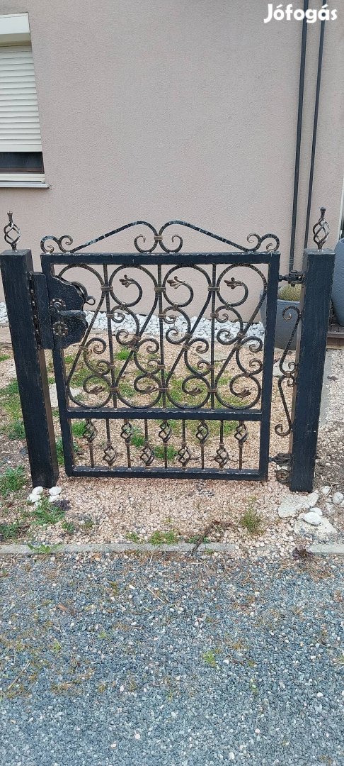 Szép kovácsoltvas kapu eladó oszlopokkal (116cm magas és 124cm széles az oszlopokkal együtt). Az oszlopokat ki kell vágni vagy emelni.