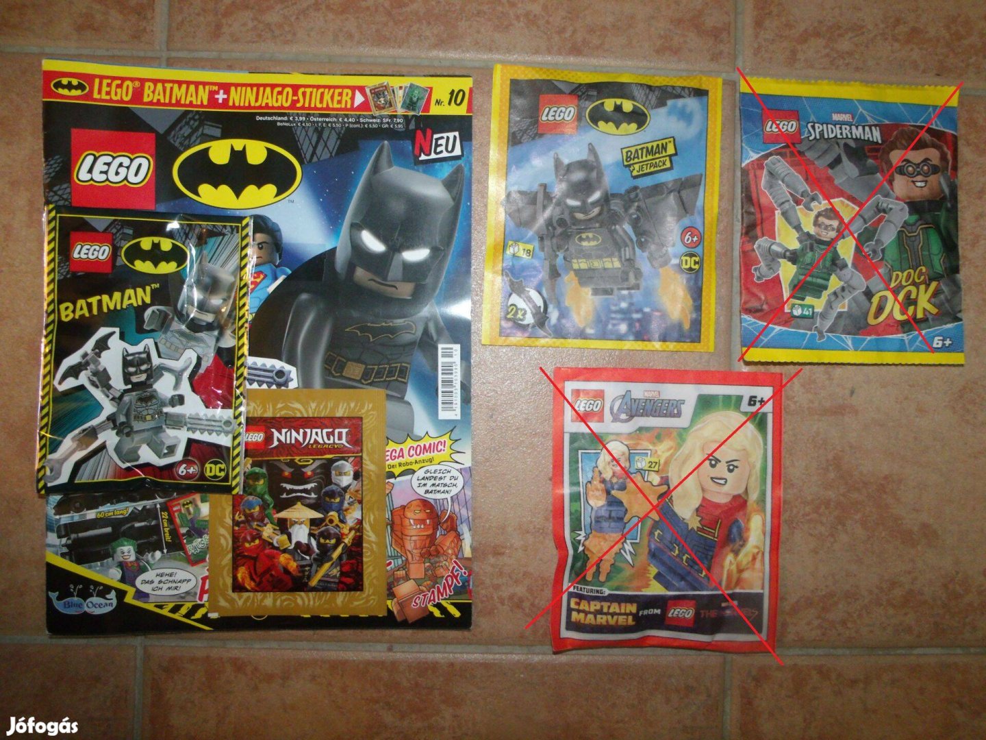 212010 számú Batman with Octo-Arms foil pack. Az sh663 kódú Batman - Four Arms Backpack minifigura. A hozzá tartozó német nyelvű újság is teljesen új: 2 poszterrel, Ninjago matricákkal, rejtvényekkel, képregényekkel, stb. 2.000Ft