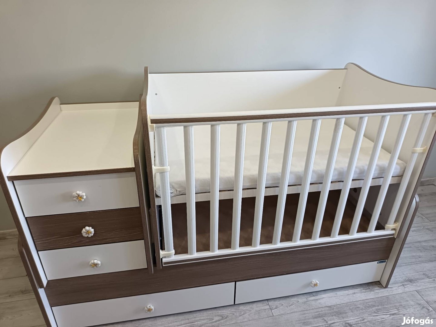Eladóvá vált a képen szereplő kiságyunk, megkímélt szép állapotban.(váltás miatt) Ringatható funkciója is van. Nem sokat aludtak benne a gyermekeim, ezáltal pl.nincs összerágcsálva.A pelenkázó rész a másik oldalra is szerelhető. Ajándékba adok hozzá egy baldachint, tartó vassal együtt, plusz lepedőket.Több infó privátban. ?Vas megyében megtekinthető