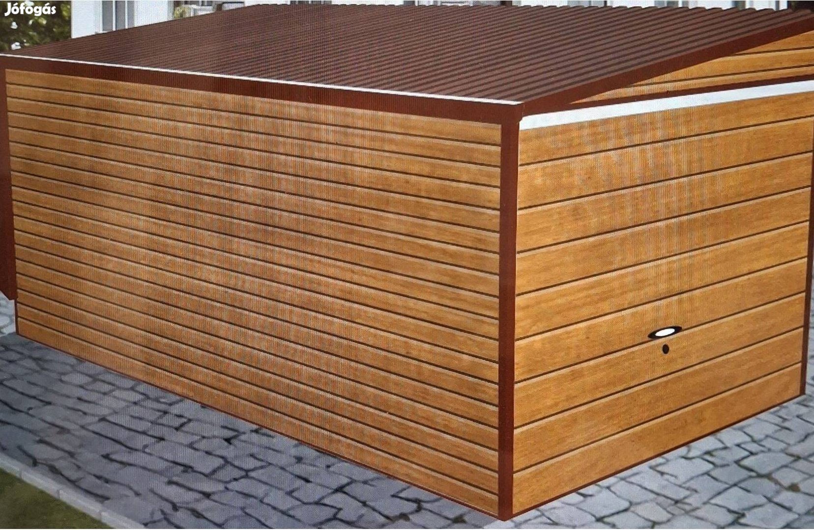 Mobil garázs vízszintes, horganyzott bordás acéllemez, akril védelemmel, v. mogyoró - s. mogyoró színben.