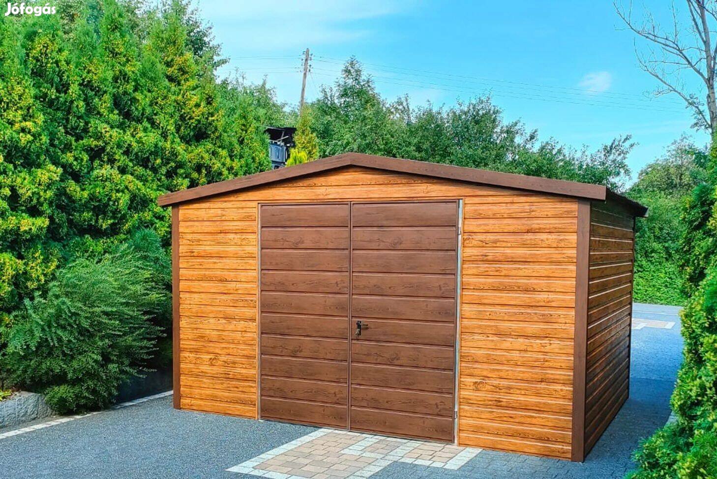 Mobil garázs vízszintes, horganyzott bordás acéllemez, akril védelemmel, s. mogyoró -v. mogyoró színben.