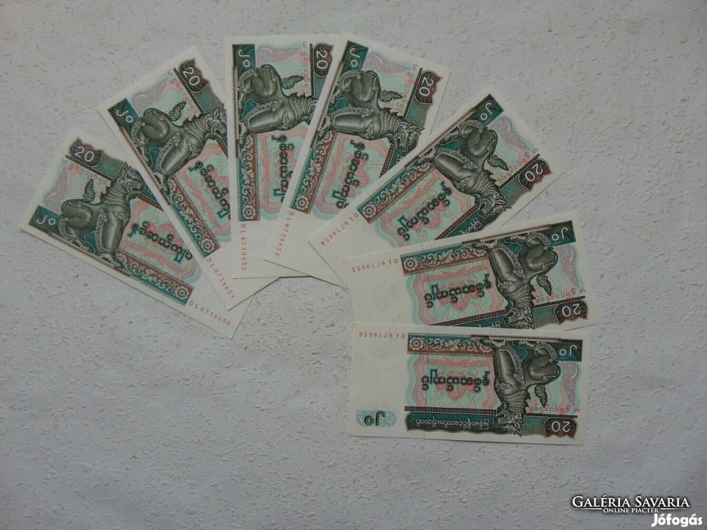 Myanmar 20 kyats 7 darab sorszámkövető szép bankjegy