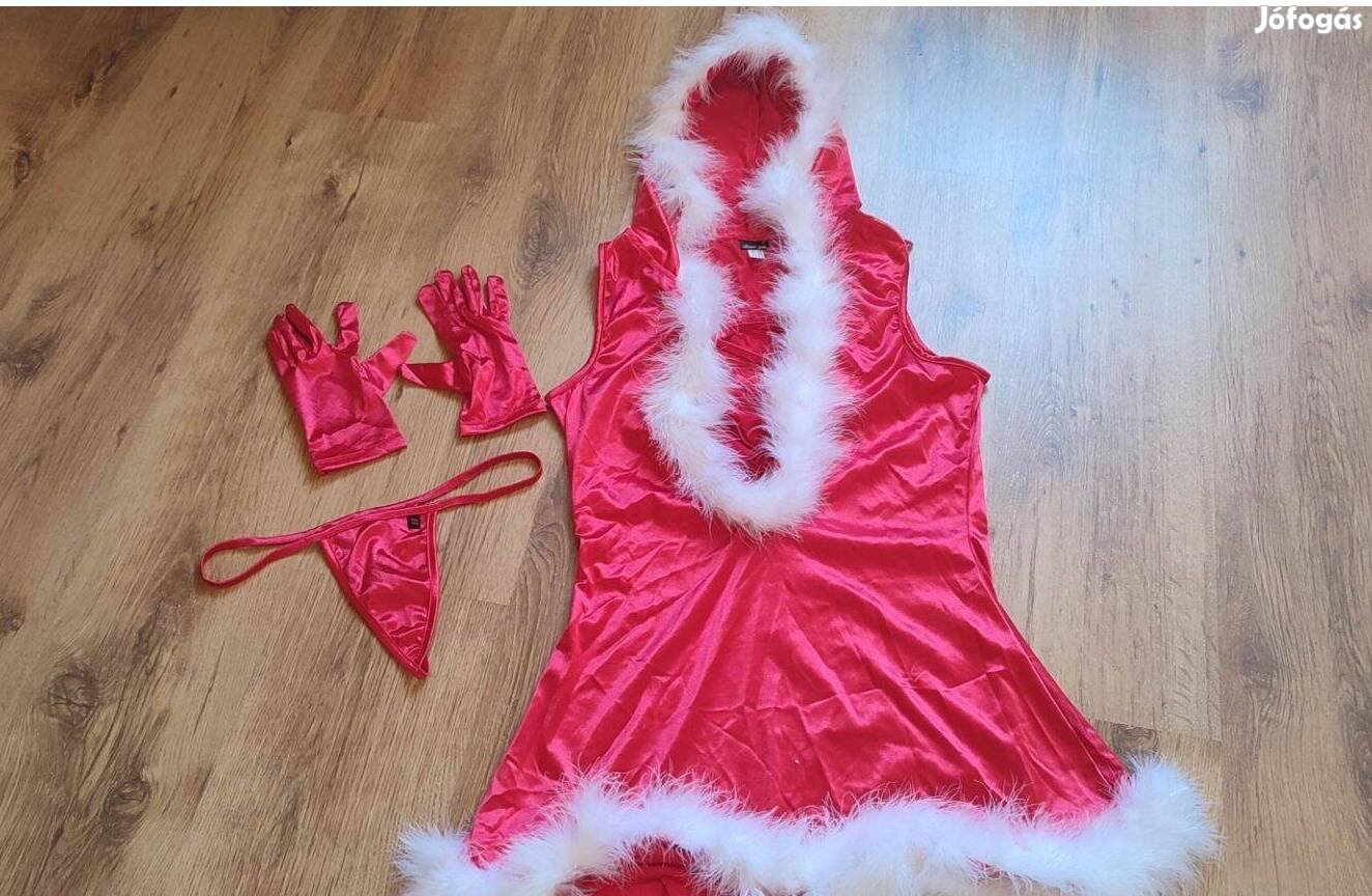 Erotikus csábító vadonatúj szexi Mikulás lány szett megfűszerezi az ünnepeket. Habkönnyű fénylő szatén ruha. Komplett jelmez melyben erotikussá varázsolható az ünnep.