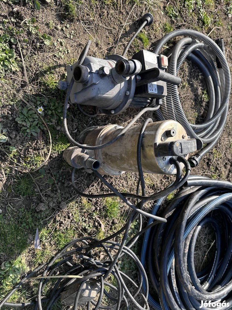 28 méteres 1coll, 5mm falvastagságú szövetbéléses öntözőcső, 7m szívocső lábszeleppel csak kipróbálva, illetve 2 szivattyú Steinberg, Alko eladó egyben .