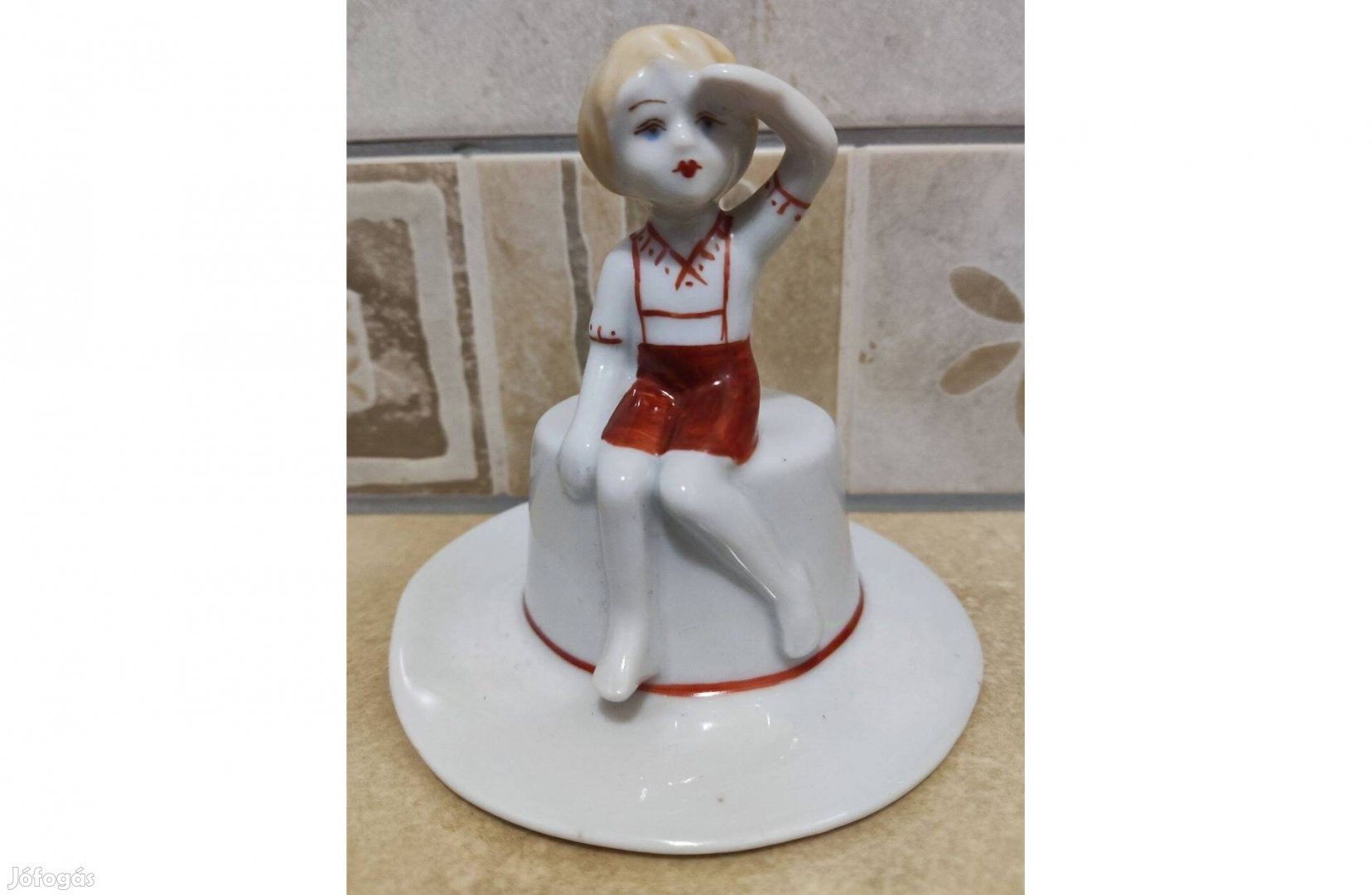10 cm magas, kalapon ülő gyerek.