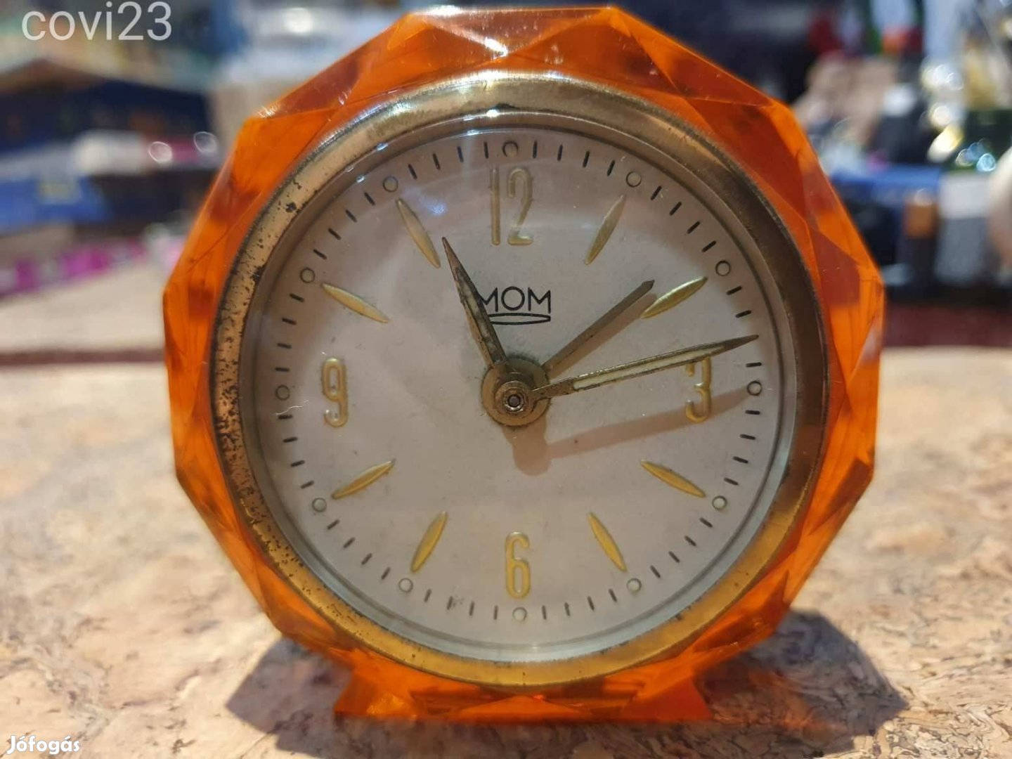 Retro MOM borostyánszinű asztali ébresztőóra igazi space age darab szo