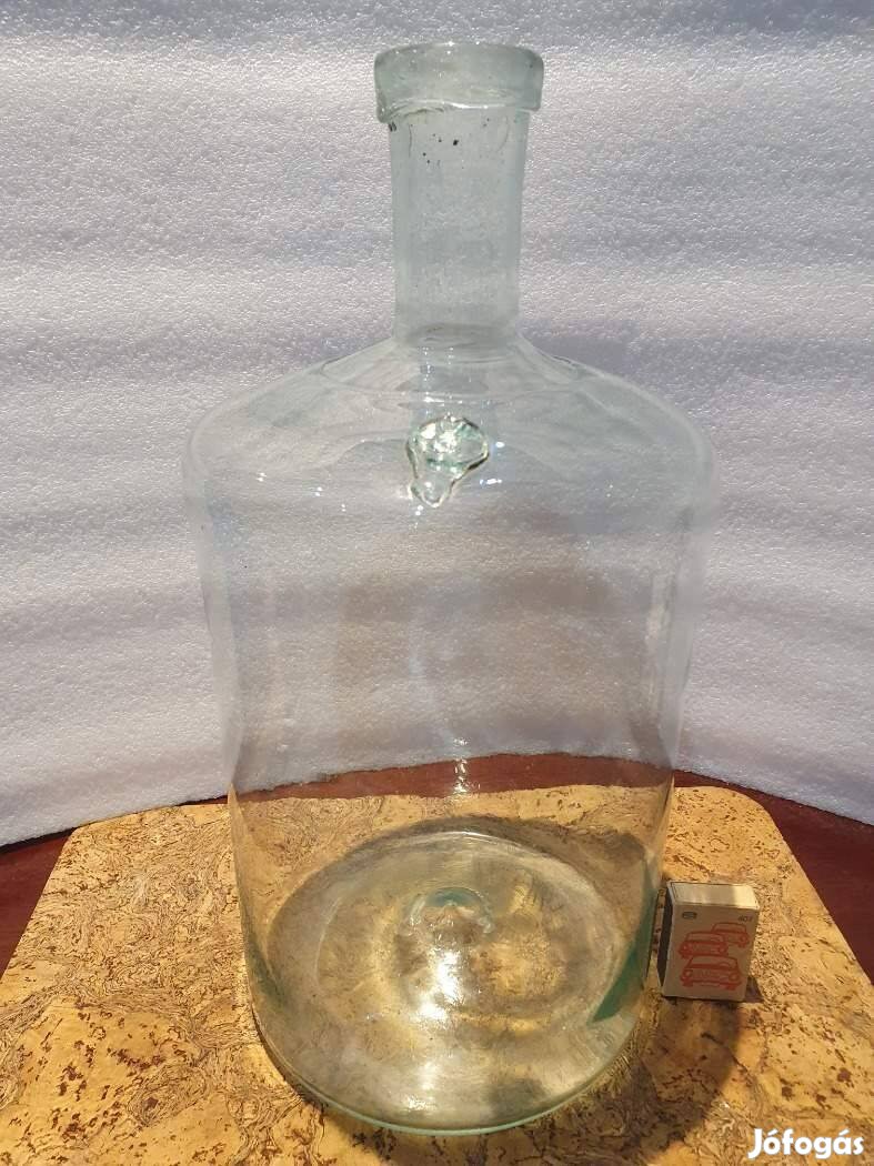 Retro antik pecsétes hutaüveg fújt szakított toldott nyakú 8L hibátlan