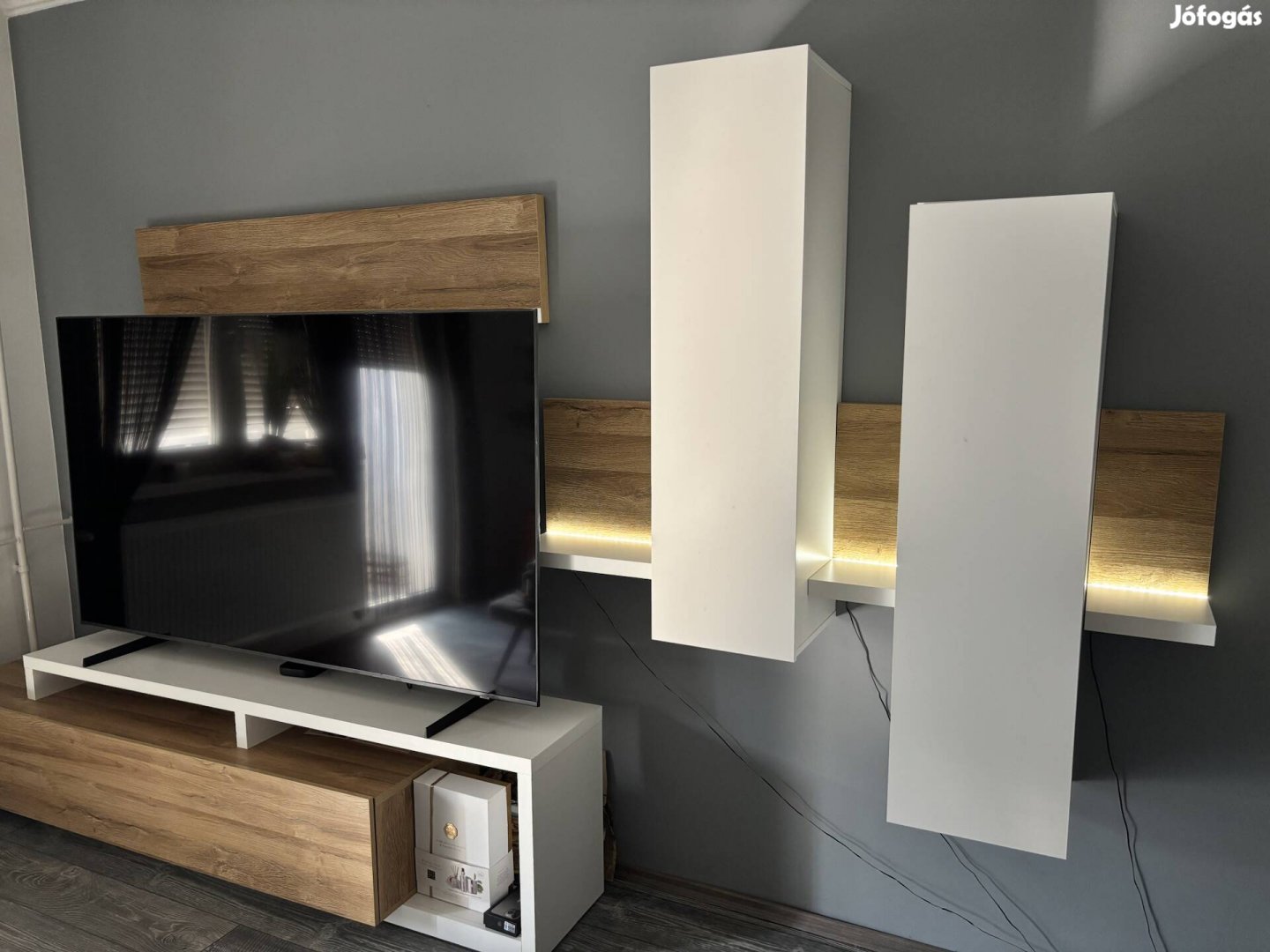 Modern TV szekrény falpanellel eladó.