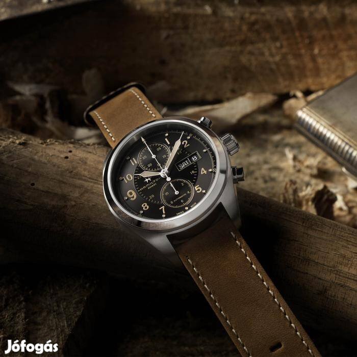 Multifunkcionális, katonai ihletésű és kalandra készült. A 42 mm-es Khaki Field Auto Chrono tökéletes univerzális. Masszív megjelenésével, 10 bar (100 méteres) vízállóságával és az exkluzív H-21 automatikus szerkezettel mindenre készen áll.