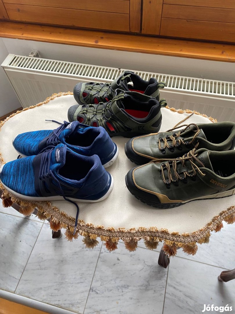 Új cipők: Devergo bőr 44-es, slazenger kék 44-es, Kastinger német márka 42-es. Külön is eladók. Szombathely 06 30 216. 8808