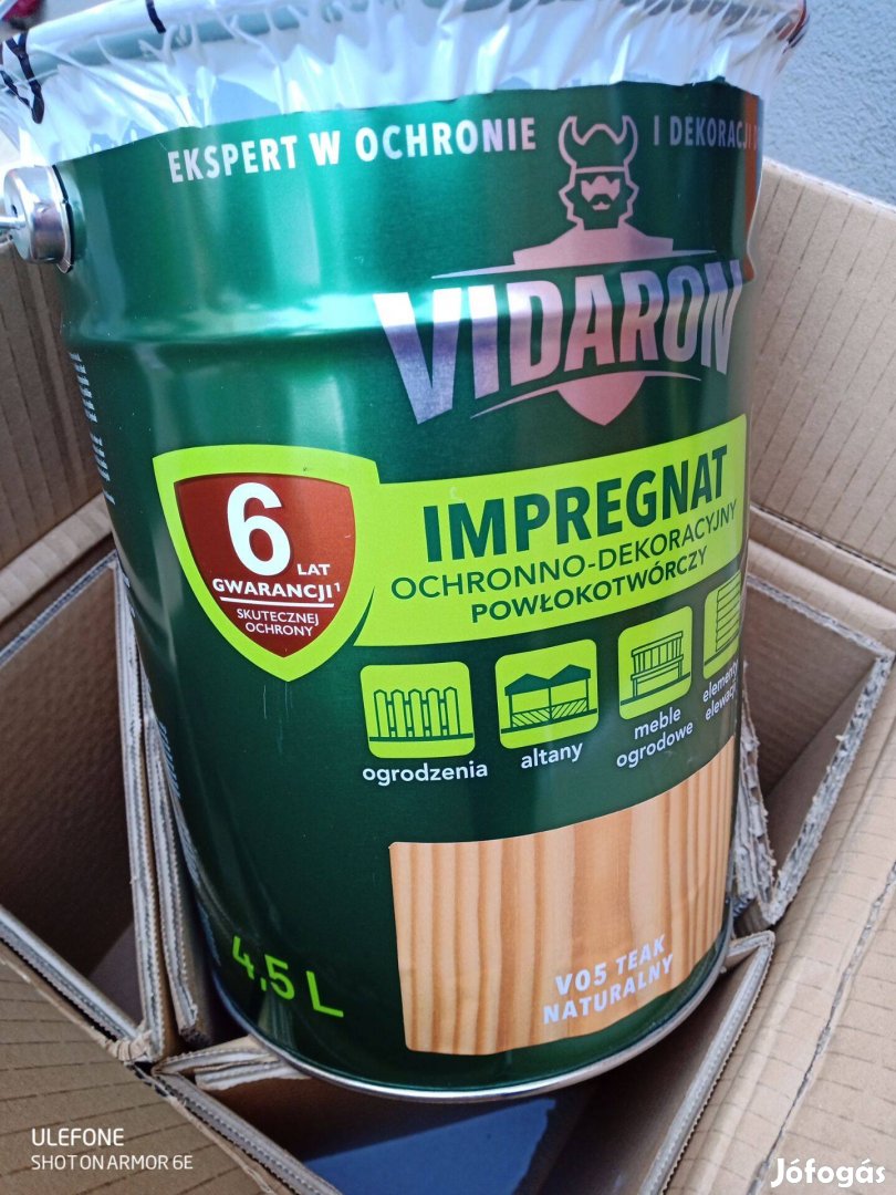 V05 TEAK színkódú Vidaron vastaglazúr festékből sokat rendeltünk. Vadonatúj. 1 db 9 literes és 2 db 4,5 literes doboz van belőle. Csak egész doboz eladó! 2700 Ft/liter az ára. Bontatlan a csomagolás. Tel:
