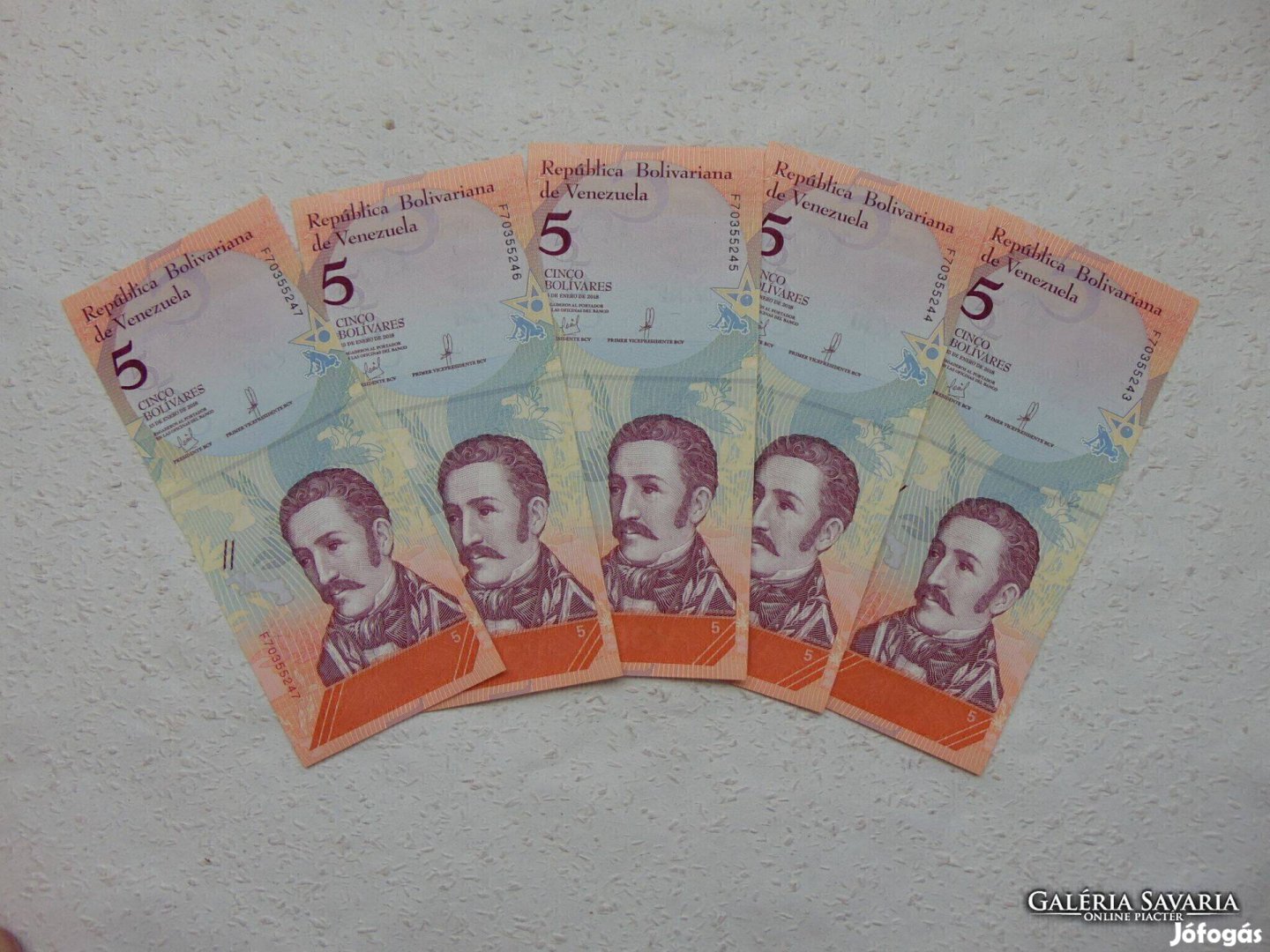 Venezuela 5 darab 5 bolivar 2018 Sorszámkövető Szép bankjegyek