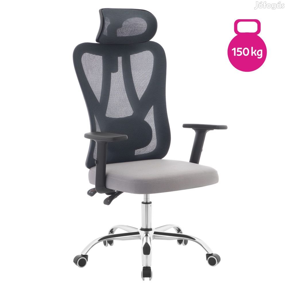 Az ergonomikus kialakítás a sötétszürke színű hálós háttámlával egész nap támogatja a helyes testtartást.