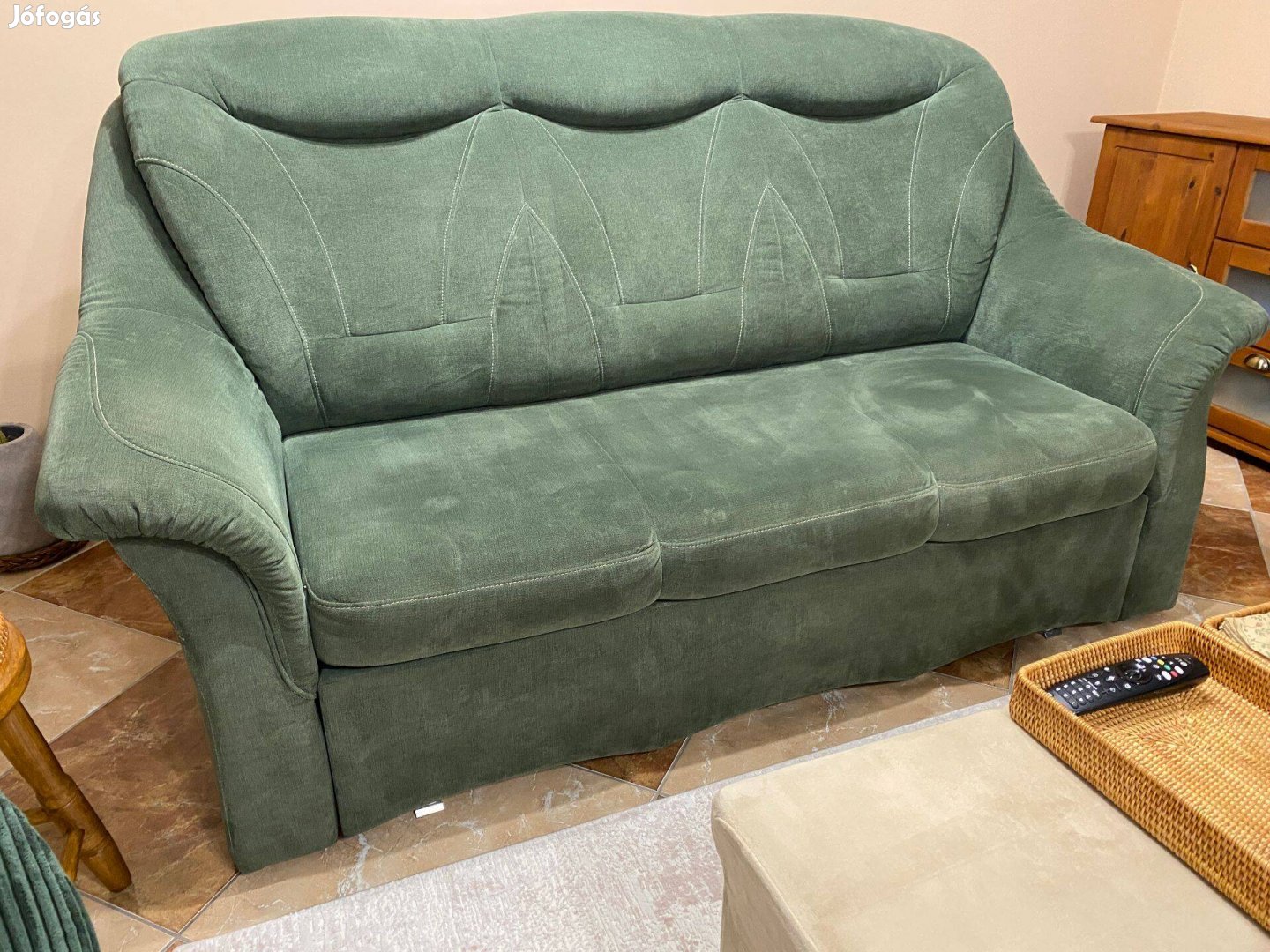 Stílusos zöld színű kanapé, amely bármilyen enteriőrben jól mutat.