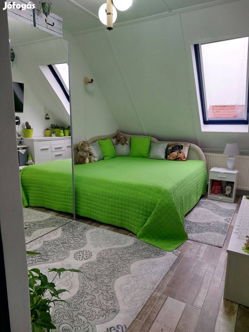 A Velux ablakok kétrétegű üvegezése kicserélésre került, árnyékoló belső rolót kapott. A padlástér igény szerint 2 egész szobával még bővíthető.