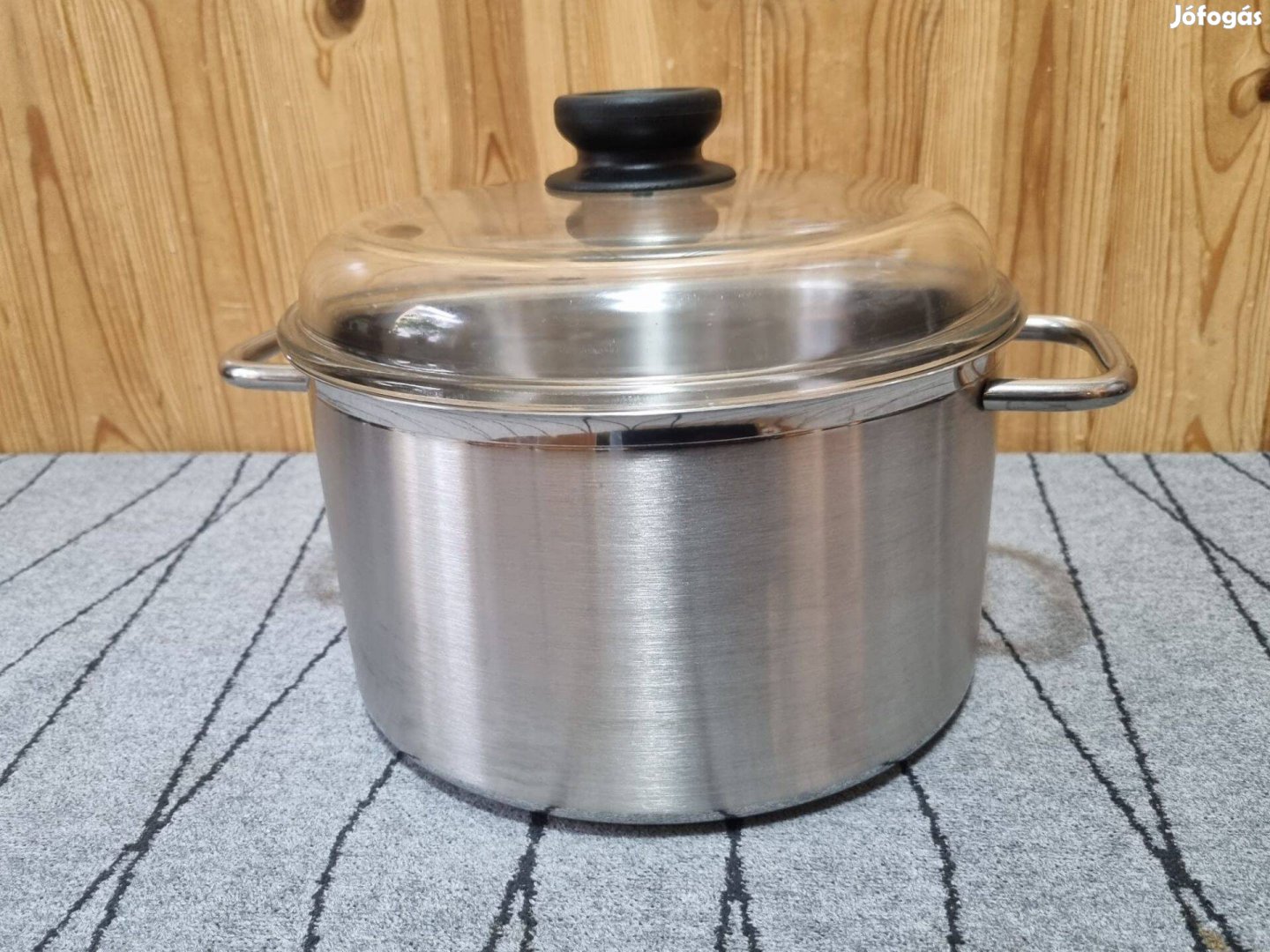 Eladó képeken látható, 24 centiméter belső átmérőjű, 6 literes fazék. Az edény indukciós főzőlapon nem használható, fedővel kerül meghirdetésre.