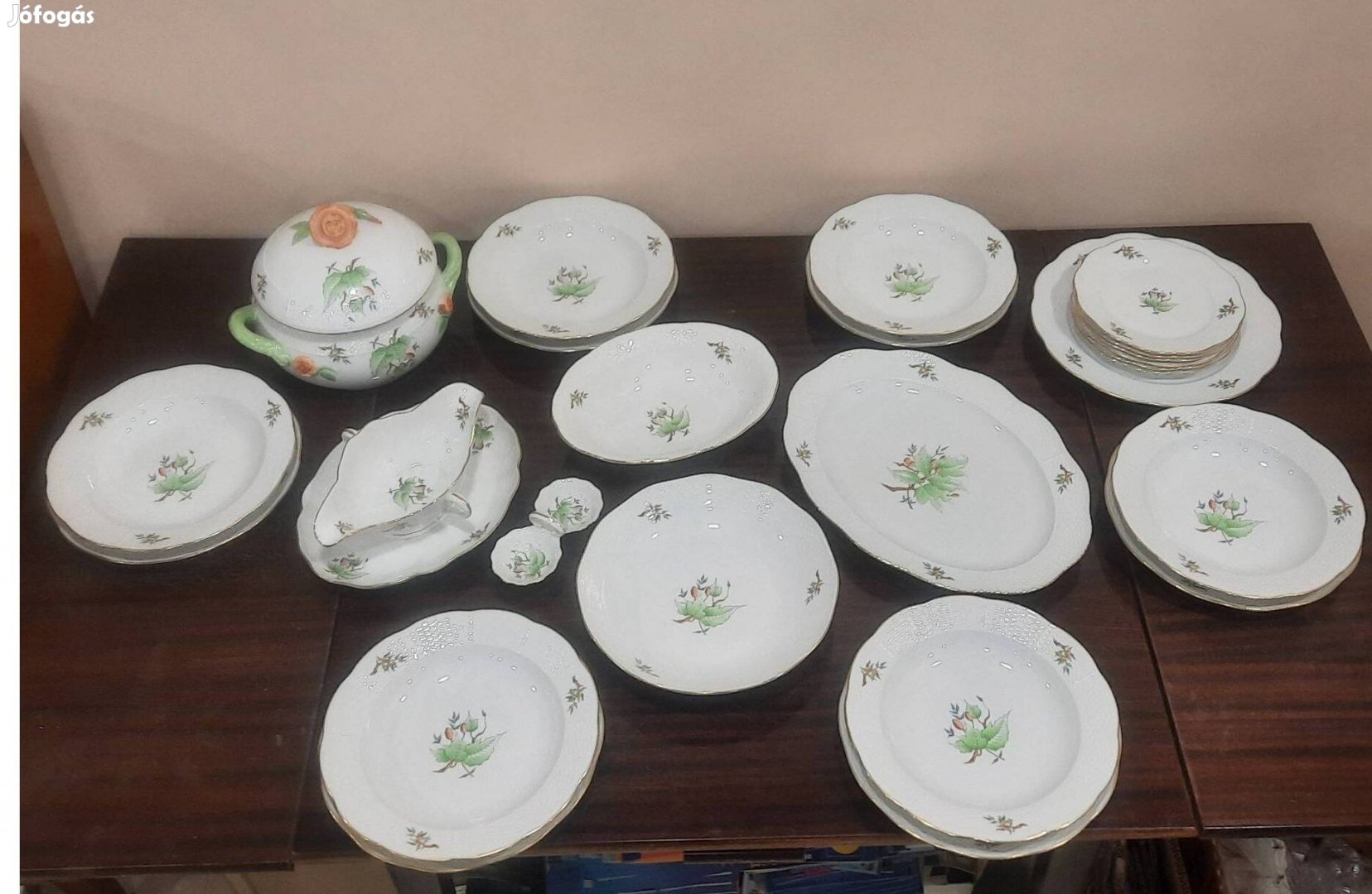 Komplett 6 személyes Herendi hecsedli, csipkebogyó mintás porcelán étkészlet hibátlan, karc és kopásmentes állapotban eladó. Gyakorlatilag új a készlet!