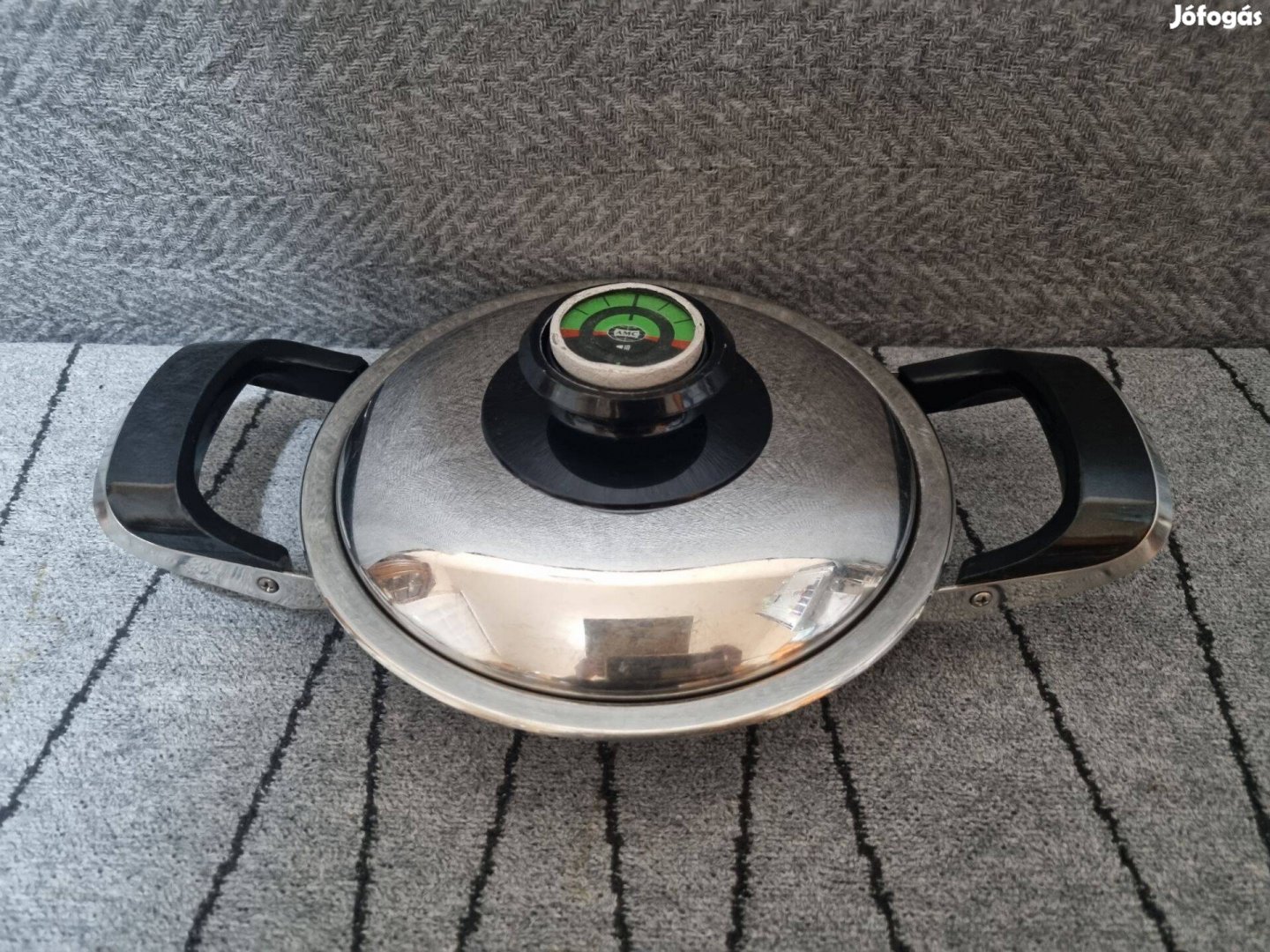 Eladó a képeken látható, 16 cm belső átmérőjű, AMC szeletsütő. Fedővel kerül meghirdetésre, igaz a fedő kupakja nem ép, lefényképeztem a hibát.