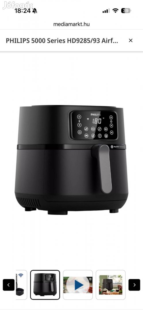 Philips Airfryer 5000 XXL: 2000W,, Mosogatógépben tisztítható, Nem melegedő borítás, Vezetéktároló, Automatikus kikapcsolás, 7 előre definiált program, LED kijelző, Melegen tartó program (30 perc), Csúszásmentes talp, Nutriu csatlakozás és vezérlés, 40-200°C