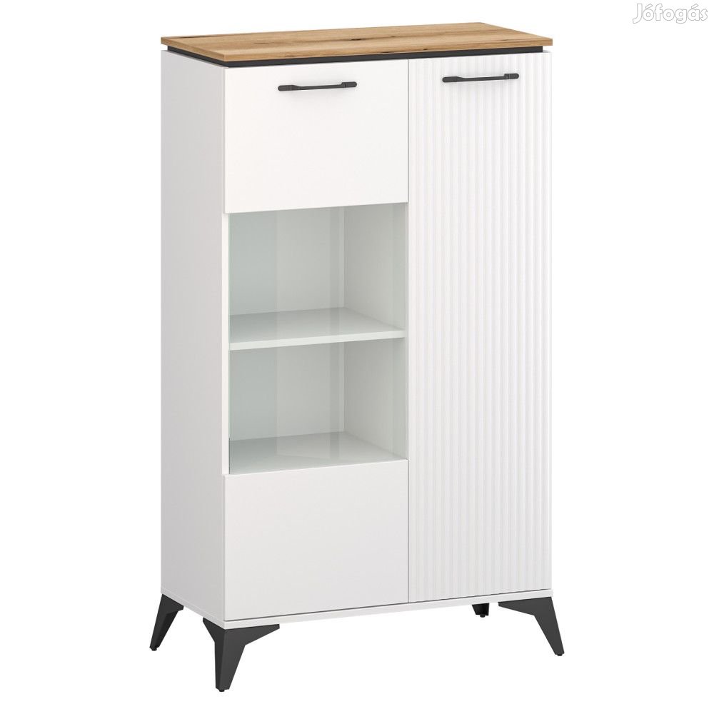 Alacsony vitrin, fehér/evoke tölgy, VELIS 1D1W