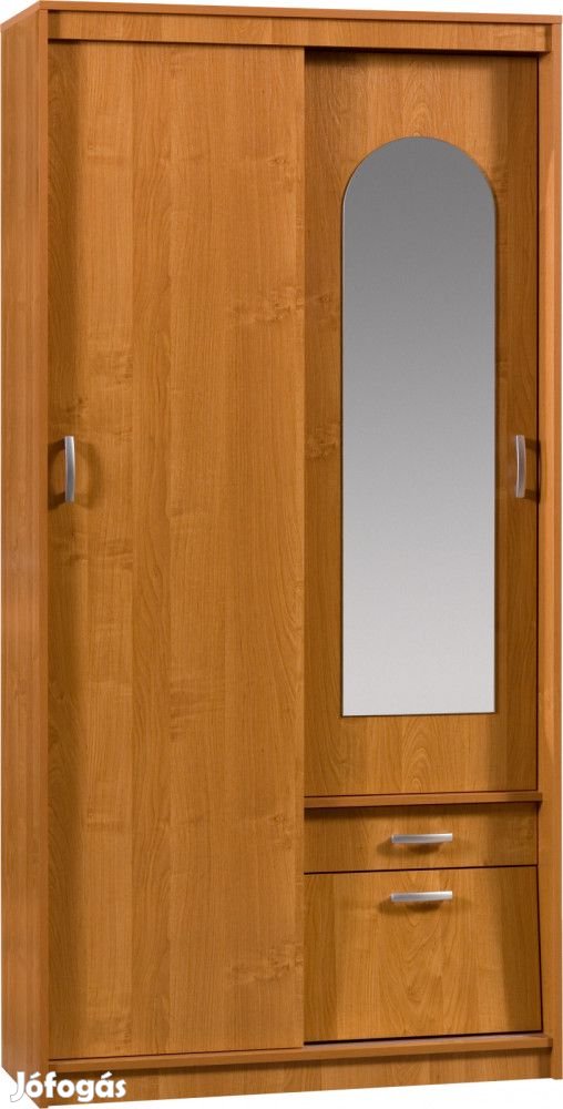 2-ajtós, akasztós, polcos, fiókos gardróbszekrény tolóajtóval, tükörrel, éger színben. További információkért kattintson ide: