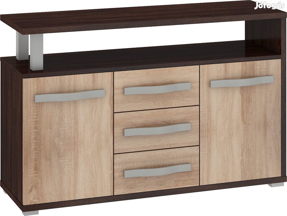 Komód 2 ajtóval, 3 fiókkal, nyitott polccal, világos sonoma tölgy és sötét sonoma tölgy színben. További információkért kattintson ide: