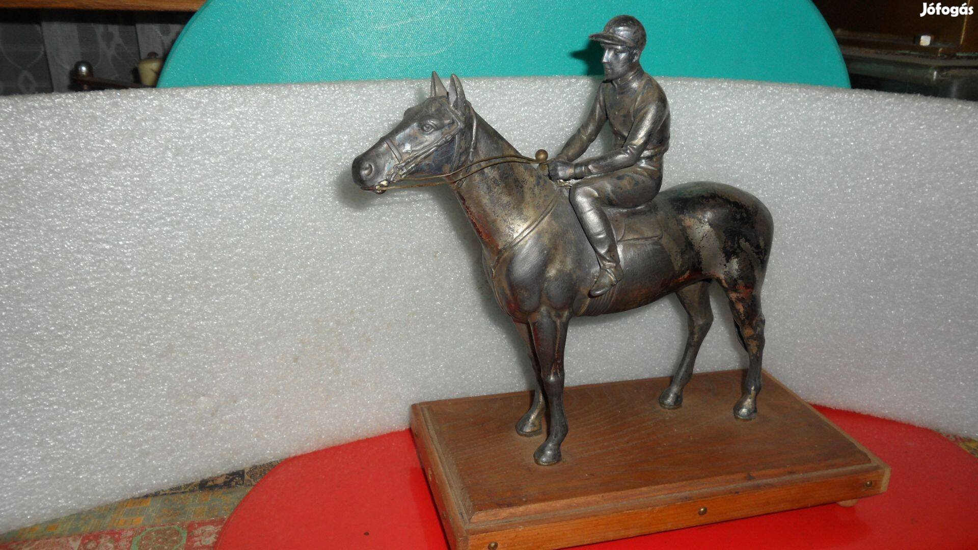 Fenti "zsokés" minőségi fém öntvény antik lovas szobor, verseny ló kompozíció, a lóimádóknak !.