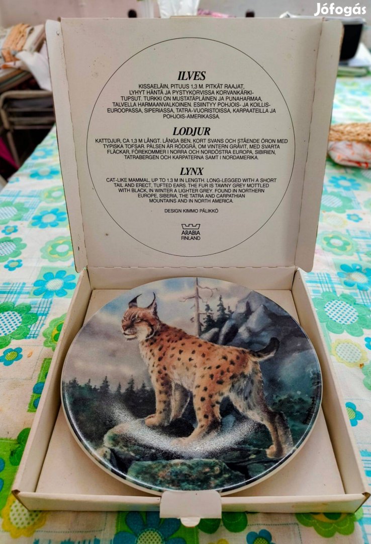 Arabia Finland falitányér Ilves (Hiúz) Kimmo Pälikkö dobozában