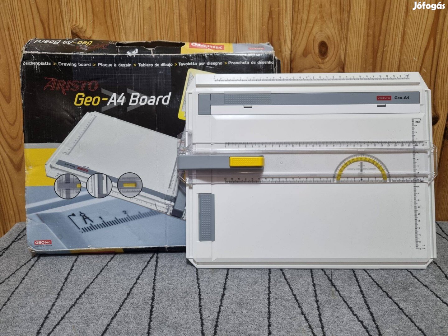 Eladó a képeken látható, A4 rajztábla. A tábla és a vonalzó egyaránt épek, a vonalzó jól illeszkedik a táblához.