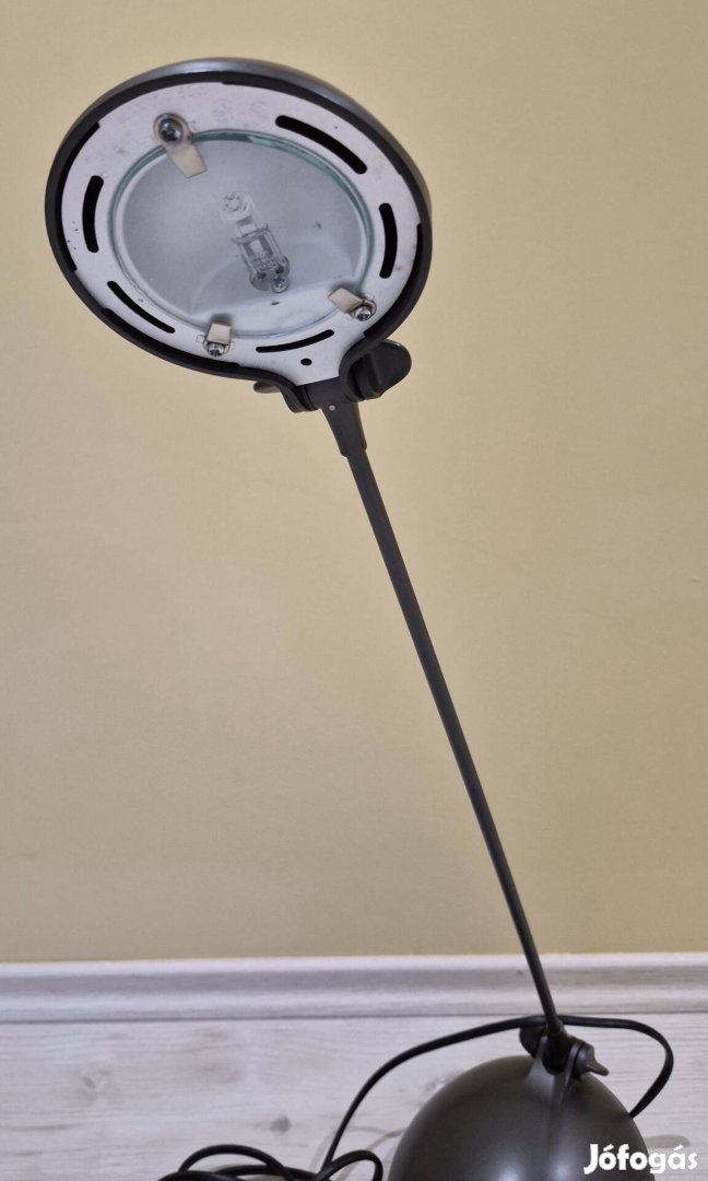 Asztali lámpa halogén izzóval együtt eladó! Barna színű, alig használt, a fejénél és a száránál állítható, kettős erősségű fényszabályozóval rendelkezik.
