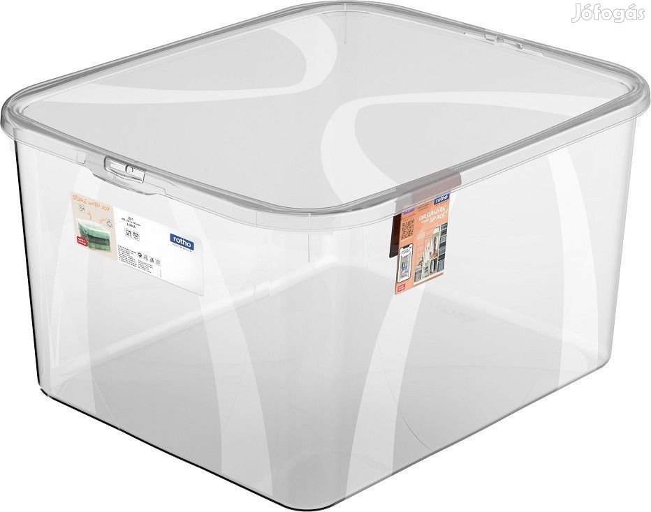 A tároló doboz 25 L-es, színe átlátszó.