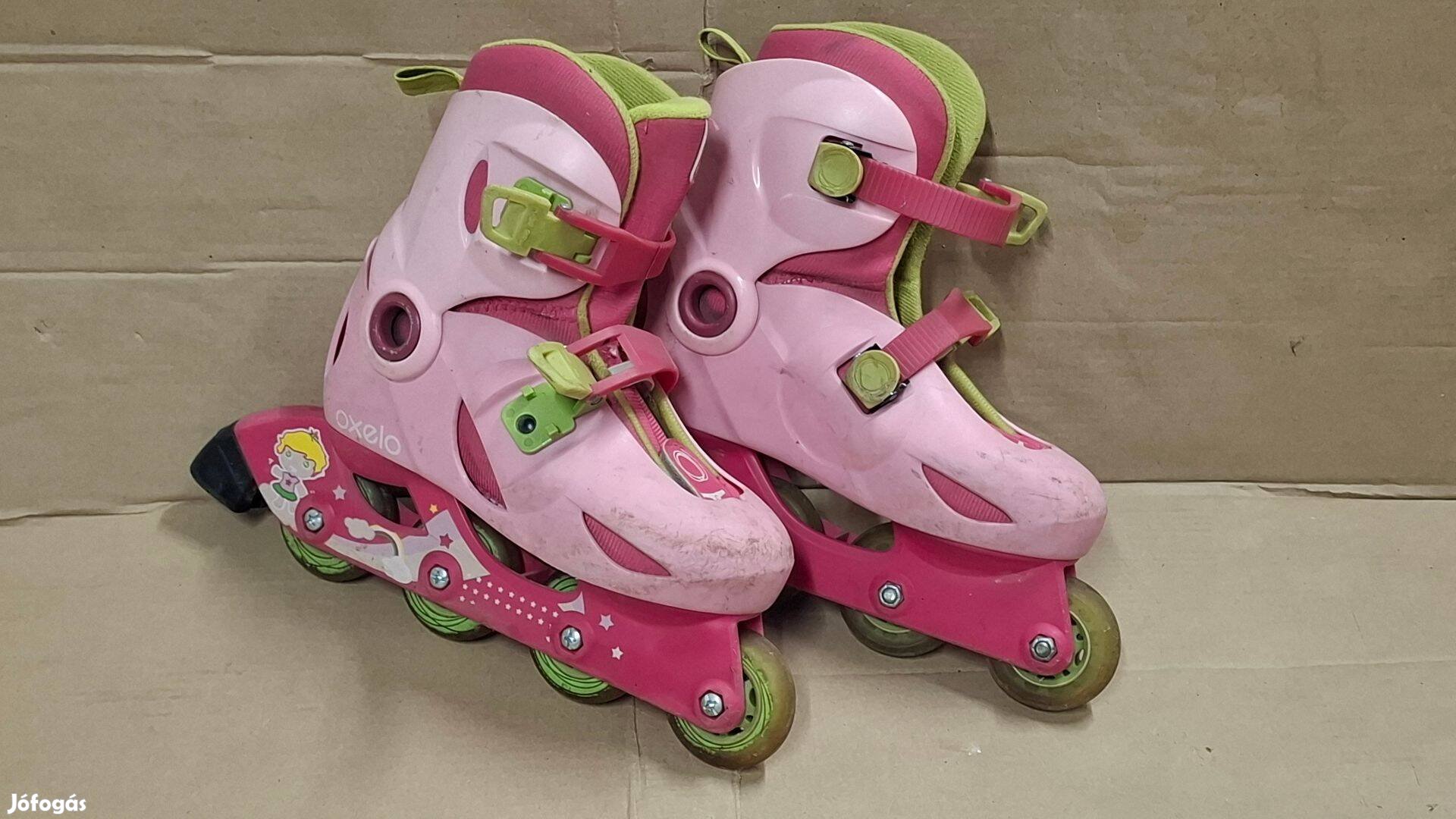 Axelo (Decathlon) 32-34 között állítható méretű görkorcsolya lányos színben. Szállításban a Herend - Veszprém útvonalon tudok segíteni.