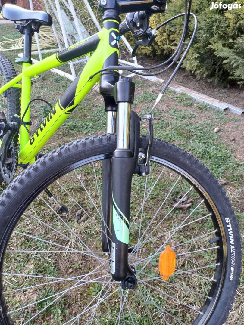 Eladó a képen látható B'twin kerékpár, ahogy a képeken is látszik használt, de az állapota jó. A kéziváltók mutatói lekoptak,