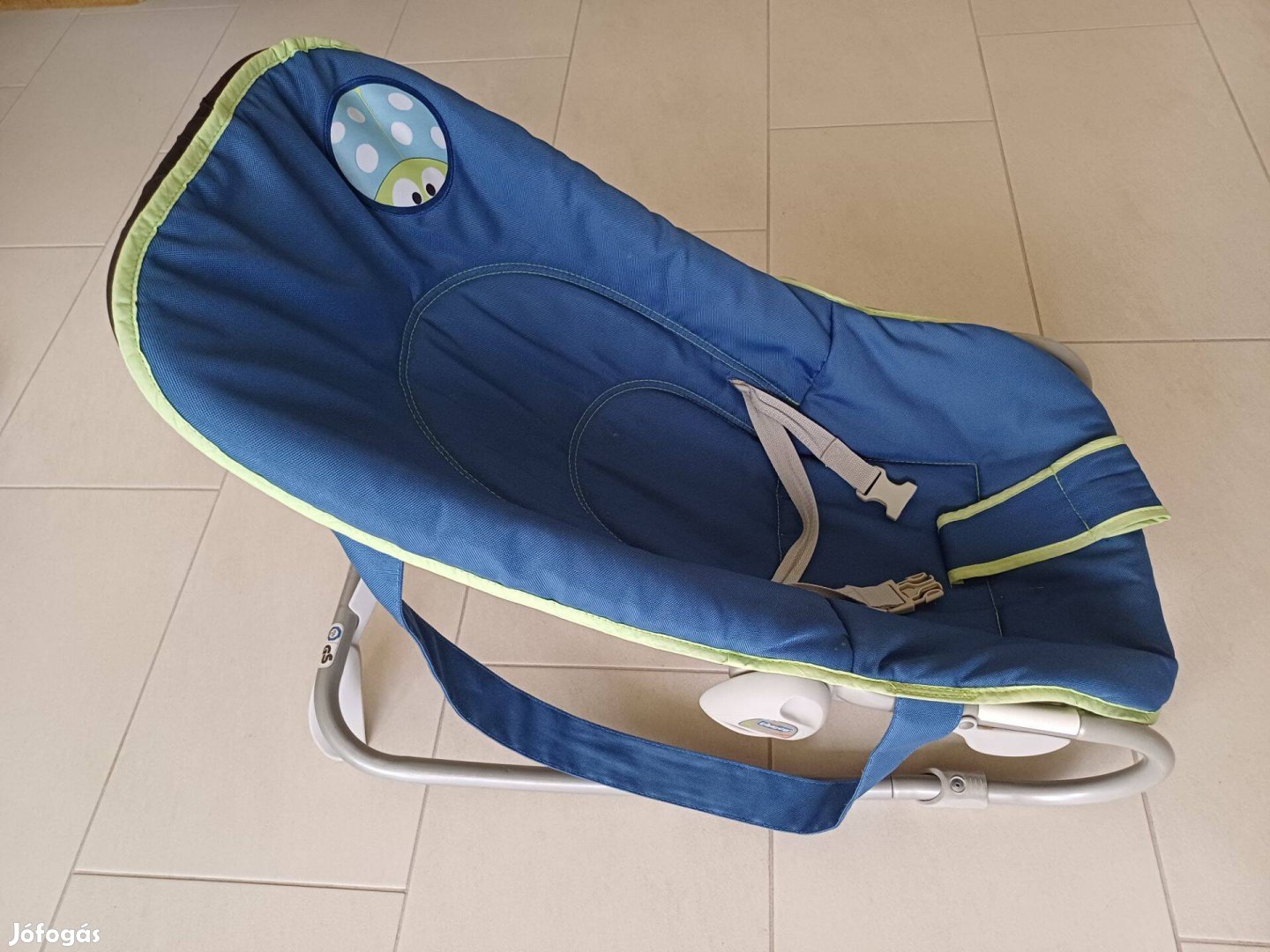 Háttámla dőlésszöge fokozatmentesen állítható. Hintázhatósága kikapcsolható. Használt, tökéletesen működik. Apró hibát fotóztam a szövet nem fekvő részén. Gyártó szerint 0-6 hónap és 9 kg-ig ajánlott.
