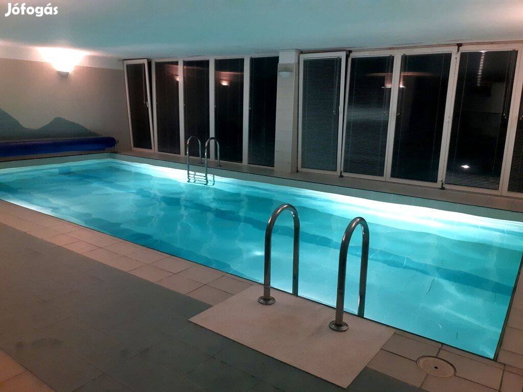 Egy egészen különleges adottságú családi ház vált eladóvá a városközpontban. A 660 m2-es telekre, a 90-es években épült eredeti házat néhány éve modernizálták, a jelenlegi állapotát 2023-ban érte el. A 326 m2-es összterületű, 3 szintes épületet, egy szépen karbantartott díszkert veszi körül. A telekre automata kapun juthatunk be. A telekszinten találjuk a 10m X 4m es, fűtött, beltéri úszómedencét, finn szaunát, továbbá a nyugodt kikapcsolódást szolgáló pihenő helyiségeket, valamint a garázst. A középső szintet a tágas és napfényes belső terek jellemzik. Egy légtérben helyezkedik el a modern amerikai konyhás nappali-étkező, valamint innen nyílik a spájz és egy 32 m2-es erkély. Még mindig ezen a szinten maradva, egy kisebb folyosóról nyílik egy hálószoba és a fürdőszoba. Egy faburkolatú lépcsőn juthatunk fel a fényárban úszó, galériás emeleti szintre. Itt két hálószobát és egy fürdőt alakítottak ki (természetesen mindhárom szinten van fürdőszoba!). Mindkét hálószobából kiléphetünk a hátsó 18 m2-es erkélyre. Igény esetén, a hatalmas belső tereknek köszönhetően, még egy esetleg két hálószoba kialakítható.