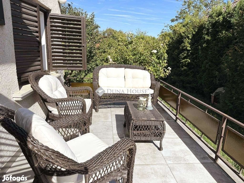 A 92 m2-es ház előtt húzódó napfényes terasz jó időben a baráti összejövetelek, vagy a pihenés helyszínéül szolgál. Innen a tégla építésű házba lépve a tágas és világos nappaliba érünk, ahonnan nyílik a jól felszerelt konyha, a fürdőszoba és egy kisebb hálószoba, Az emeleten teraszkapcsolattal rendelkező nappali és két hálószoba található.