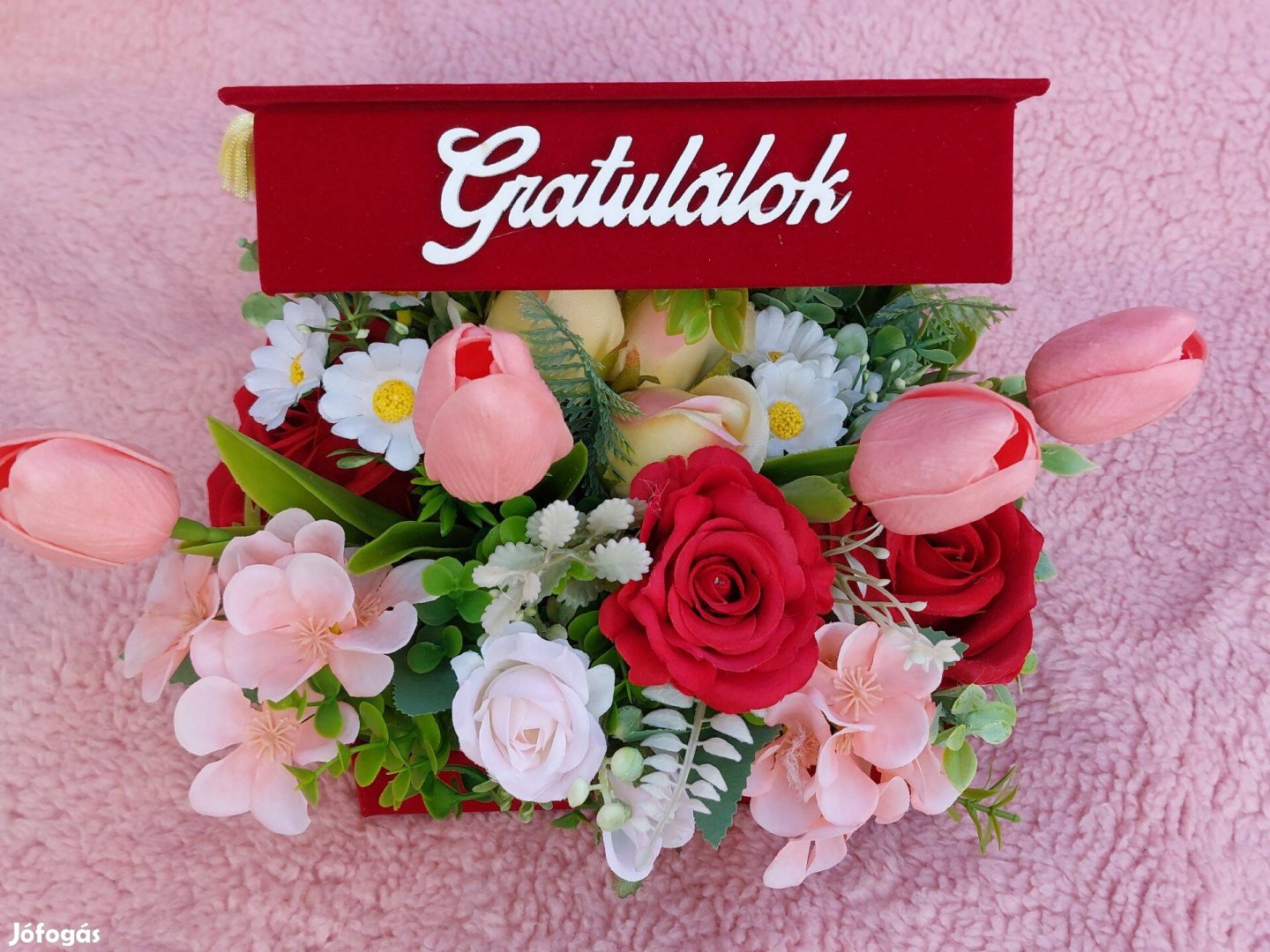 Ballagó doboz "Gratulálok felirattal" Tulipános-Rózsás