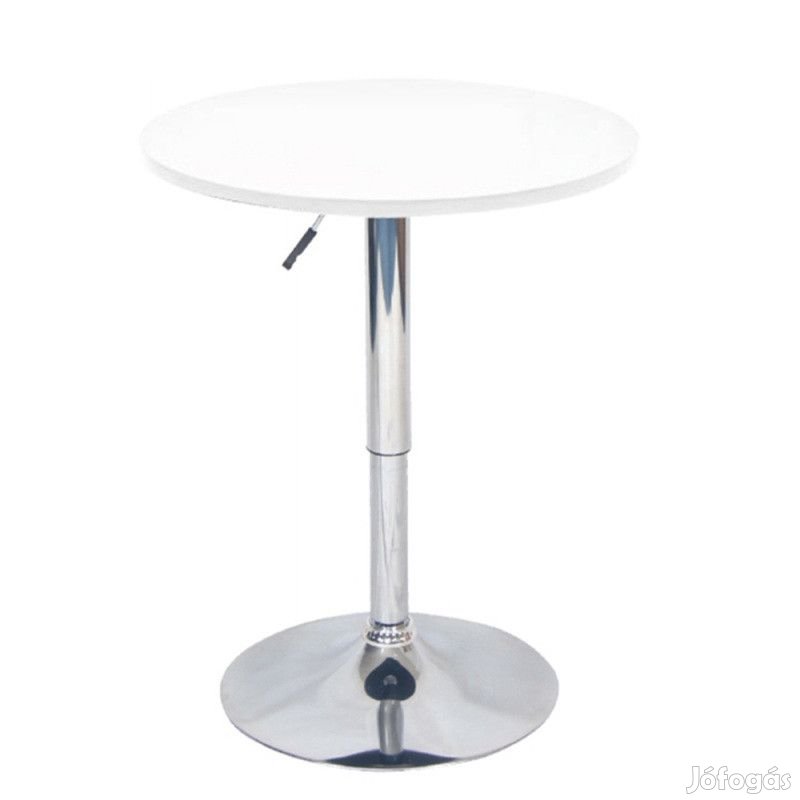 Szilárd lábon áll, mely krómból készült, és egy fehér színű MDF lap fekszik rajta. A kar segítségével könnyen állíthatja a magasságát 68,5-93 cm magasra. Ez a praktikus és trendi bárasztal teljesíti minden igényét. További információkért kattintson ide: